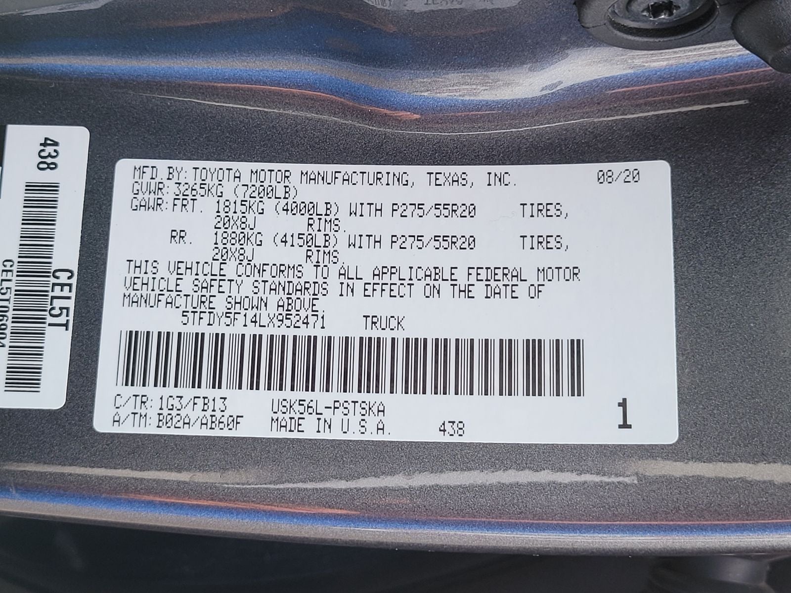 - Front Tire Size: P275/55HR20