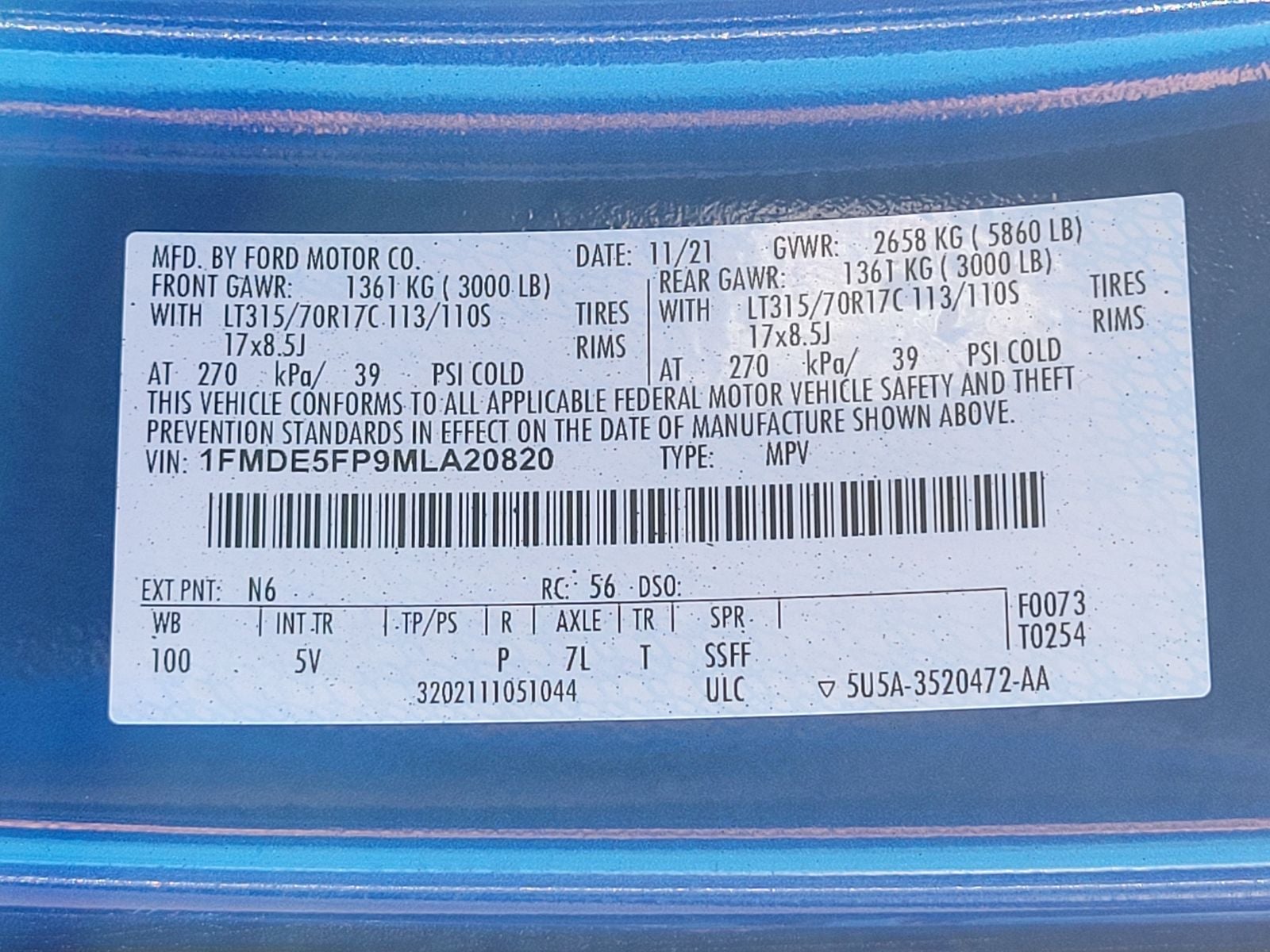 - Gross Vehicle Weight Rating Cap (lbs): 5860