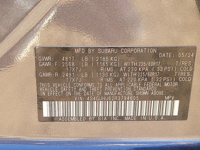 - Tires: 225/60R17 99H All-Season